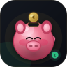Your piggy bank mascot evolves through 15 phases as your income grows — from Sleeping Baby to Coin God.